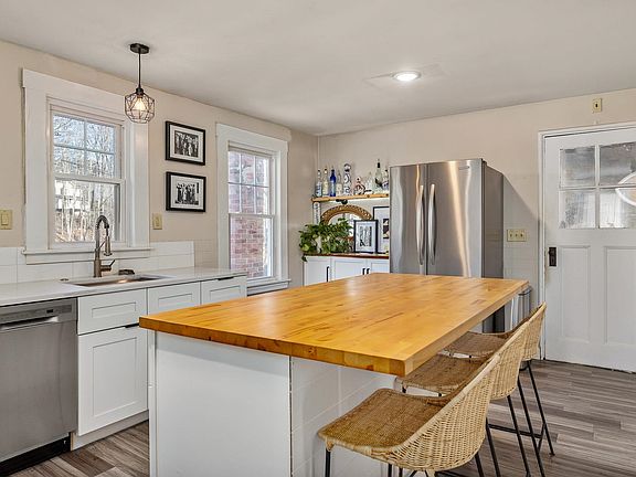 INCREDIBLE LOCATION! This newly renovated single-level home is situated less than a half mile to downtown Kittery and only 1 mile to downtown Portsmouth! Upon entry you'll find tons of charm & character including beautiful hardwood floors, custom built-ins, sliding barn doors, and unique details throughout! The kitchen features a large island with enough room for casual dining, ample cabinet space for storage, open shelving, and tile backsplash. The kitchen opens up to the living room through the sliding glass barn doors which can be closed off if desired. The spacious living room is warm & inviting with lots of natural light and enough room for a sectional. The south-facing main bedroom is large enough for a king size bed and has a nicely sized closet. The 2nd bedroom has custom built-in shelving and desk making it perfect for a home office. The backyard is completely fenced in, and you'll enjoy entertaining on the back deck and spacious yard with a firepit! The basement and garage both offer excellent storage for your bikes, surfboards, and kayaks, plus keep your car out of the snow! Don't miss this rare opportunity to live steps away from shopping, restaurants, entertainment & more! Close to the Shipyard, beaches, and waterfront.