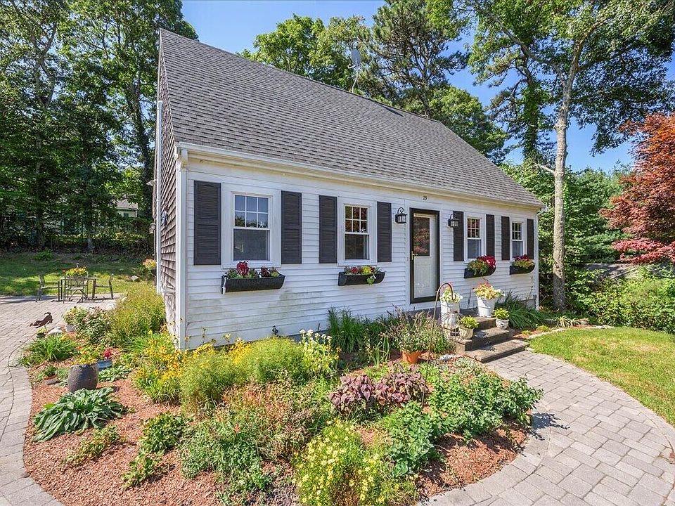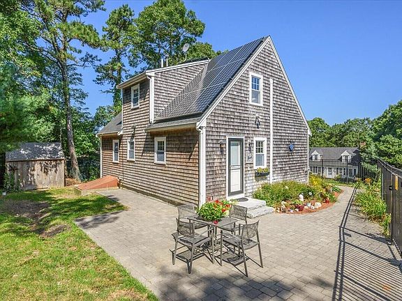 Move in ready . . . Open living space . . . lots of natural light . The kitchen / dining combo has access to patio and fenced yard. Living room, office and half bath on first floor. The third bedroom is currently the dining room. Passing Title V if for 3 BR. Upstairs are two large bedrooms and full bath. Recent updates include: roof, windows, vinyl siding on front, doors, storm doors, bulkhead, mini split a/c units. Solar panels are owned and generate income for owner. Driveway is shared with neighbor. The Ryder Woods neighborhood is conveniently located near Holly Ridge Golf, Wakeby Lake, Town recreation area and shopping at Quaker Meetinghouse.