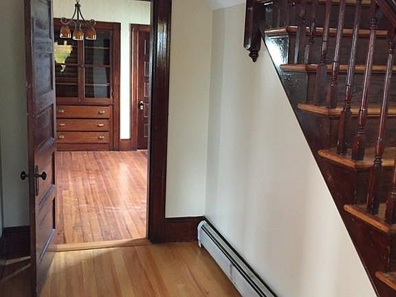 A spacious home *in* downtown Easthampton, only steps from Nashawannuck Pond and the Cottage Street Cultural District? Yes! This property on Maple Street offers high ceilings, period built-ins, hardwood flooring and details throughout.There is more than enough room for entertaining family and friends in this well laid out home, beginning with a formal entryway that is warm, inviting, and complete with two stained glass windows.With four generously sized bedrooms on the second floor and a partially finished, light-filled third floor, there are options for your master suite. First floor laundry is an added convenience in a home this age, and the side porch off the kitchen makes for a nice transition space when coming in from the driveway. Enjoy a back yard that is level and easy to maintain with the existing matured perennial plantings, or sit on your front porch and watch the world go by - all with a beautiful view of Mount Tom! OPEN HOUSE, Sunday,10/23, 2:00-4:00.