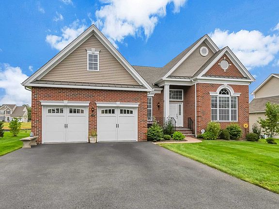 Why wait for new construction? Toll Brothers Hopewell Glen - Bayhill Collection - Heritage Brick Ranch. Maintenance free lifestyle includes lawn care, irrigation, clubhouse with fitness center, tavern room, pool, tennis & sports courts. Custom built spacious 2 bedrooms, 2 baths, + den/office with French doors (potential 3rd bedroom), thousands in upgrades! Beautiful slate entry with sitting porch, curved archway foyer entrance, open floor plan with 10' ceilings & crown molding, hardwood floors, and fireplace. Large kitchen with oversized quartz counters, marble backsplash, and SS energy efficient appliances. Open view from kitchen of covered back porch & back yard. Spacious 2 car garage with corner entry to full sized-high ceiling basement. Commercial whole house generator included. Super desirable location in Southern Dutchess County, minutes to TSP, I84, Metro North, Stewart International Airport, and NYC. Walk to Dutchess County Rail Trail.