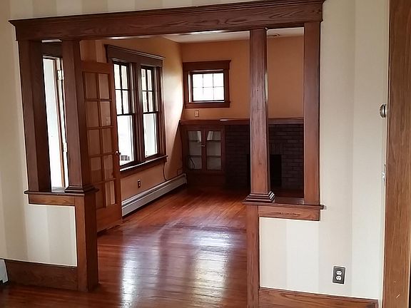 Great neighborhood! Beautiful 2 bedroom, 1 bathroom unit all on 1st floor. Big open concept kitchen, Dining Room. Living Room with built ins and decorative fireplace. Warm and inviting Sun Room. Tenant responsible for Electric, Heat, Gas. Landlord pays water. Tenant responsible for snow removal, landlord maintains lawn. Off street parking. Credit Report, Interview and Income Verification Required.