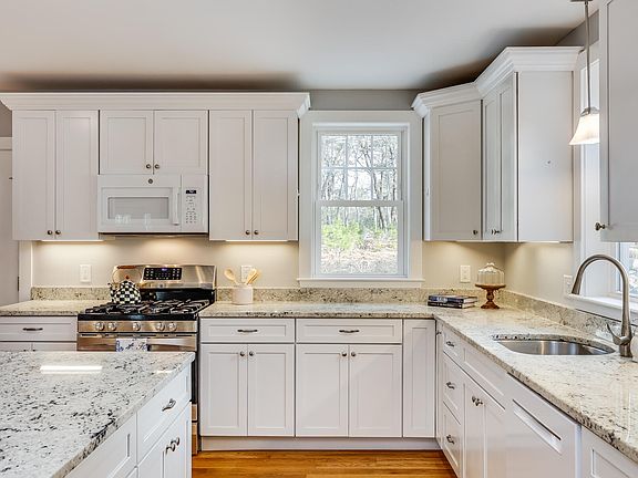 Pristine, turnkey 4 bedroom, 2.5 bath, 2,850 sf Cape built in 2017, is full of natural light and owner upgrades. With open floor plan, the main level features living room with gas fireplace, built-in bookshelves, high ceilings and hardwood floors throughout. The dining room flows into the kitchen for easy entertaining. White shaker Kraftmaid cabinets, counter lighting, pull-out racks, granite surfaces, gas range, pantry and large center island are sure to please. The primary bedroom boasts walk-in closet and bath with tiled shower. Half bath, laundry, coat closet and direct entry 2-car garage complete the first floor. Upstairs you will find 3 additional generously sized bedrooms, full bath and airy loft. The home with back yard deck sits privately on just under an acre of high ground with ample room for a pool. Owner upgrades include whole-house generator, extensive landscaping, 6-zone irrigation system with driplines, waterfall, tankless Rinnai hot water heater and cafe shutters. Conveniently located near E Harwich shopping and the villages of Harwich Port and Chatham, this home is a showpiece of custom quality with everything you need to live comfortably year-round or seasonally.