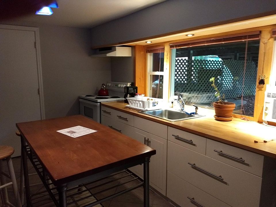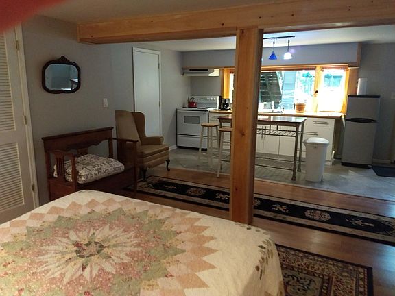 1.5 miles to center of town, charming garden furnished ground floor apartment , large deck, above ground pool, parking on site, generac Owner pays water, garbage, fuel, electric and internet. This is a long term rental but I do a 30 day lease.