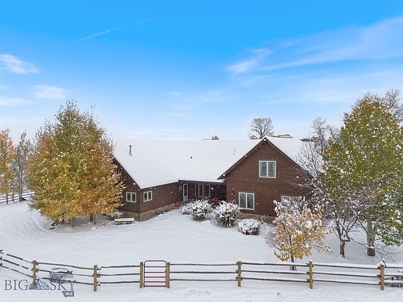 Welcome to your Montana dream home with stunning mountain views and endless outdoor recreation. This extraordinary 20-acre horse property boasts a luxurious 4-bedroom, 3-bath home, perfect for those seeking a blend of comfort and serenity. The home has an open floor plan, beautiful Brazilian Cherry floors in great room, dining, and kitchen. Coupled with 10-ft ceilings, stained wood trim throughout, and cozy brick fireplace, it creates an inviting place to come home to. Enjoy a cook’s kitchen with a walk-in butler’s pantry with freezer and butcher block island, stainless appliances, and loads of cabinetry and prep space. The main floor has a great room, kitchen, dining, large library/office space off the great room, master bedroom with ensuite bath and walk-in closet, 2 bedrooms, 1 full bath, oversized laundry room with mudroom space. Upstairs is a living/rec room/tv space, 1 bedroom and a full bath. The home has abundant storage and an oversized 2-car garage. This property has no covenants or HOA fees. The property is fenced and cross-fenced for livestock with a small livestock shelter, individually fenced 1-acre coral, has ample water rights, pond, a round pen, barn/shop, chicken coops/runs, garden area, new 70 x 30 certified commercial shop with its own well and septic, and a convenient automatic underground stock waterer. For the dog owner, there is an underground dog fence (approximately 3-4 acres directly around the house) and 3 large-dog collars. Enjoy your views from one of the 3 porches/decks, complete with hot tub.