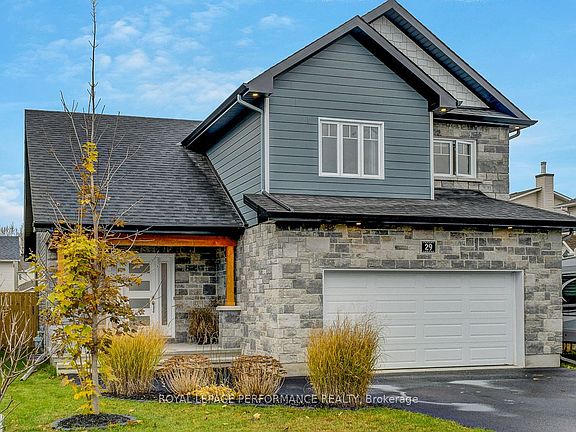 Welcome to this exceptional 3-bedroom, 2-storey home where modern elegance meets everyday comfort. Only seven years old, this residence has been lovingly maintained and shows like new, reflecting pride of ownership in every detail. The exterior is impressive, featuring striking architectural lines, illuminating soffit lighting, and a grand covered entrance that creates a welcoming first impression. Step inside and you're greeted by a bright, open-concept layout bathed in natural light from oversized windows, accentuating the beautiful flooring, cathedral ceiling, and tasteful finishes throughout. The spacious living and dining areas flow seamlessly together, providing a warm and inviting setting perfect for gatherings or quiet evenings at home. The kitchen is both stylish and functional, offering sleek stainless steel appliances, a walk-in pantry, and an abundance of counter space. The large island, complete with a built-in wine fridge, serves as the heart of the home-ideal for entertaining friends and family. Upstairs, discover three generously sized bedrooms, each with large windows and ample closet space. The primary suite feels like a private retreat, boasting a luxurious 4-piece ensuite with a soaker tub, glass-enclosed shower, and modern vanity, as well as a spacious walk-in closet. The convenient second-floor laundry adds functionality to the home's thoughtful layout. The lower level offers endless potential-perfect for a home gym, office, or recreation room-and awaits your finishing touch. Outside, the recently transformed backyard is a true oasis featuring a covered veranda, a stunning stamped concrete patio and relaxing hot tub, ideal for unwinding or entertaining beneath the stars. Located steps from parks, schools, and conservation trails, and just minutes from local shops, restaurants, and amenities. This home offers the perfect blend of modern luxury, community charm, and easy access to Ottawa.