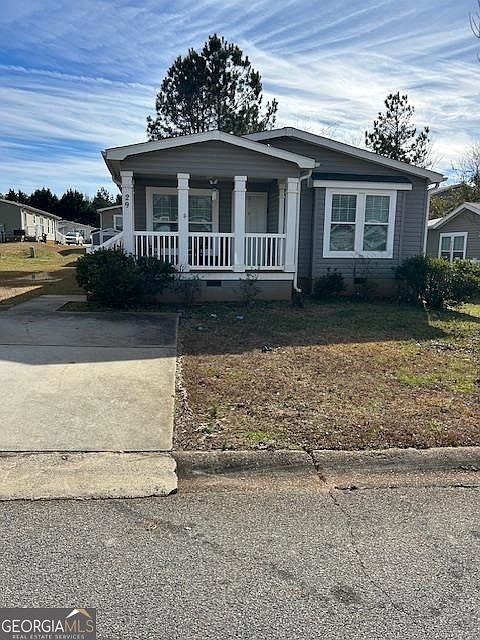 This stunning 3bedroom/ 2Full Bath Modular home is located in the Coweta Hills community. Upon entering you'll quickly notice the open floor plan, wall to wall LVP flooring, and the breathtaking farm house kitchen. Which house the oversized bar, White cabinetry, stainless steel appliances, and tile backsplash. The family room which includes a customized entertainment center with built in cabinetry captivates you. This home also has a mud room with farmhouse sink included. The Master bathroom consist of his and her vanities, a garden tub, separate shower and walk-in closet. The house sits on a very spacious yard, and includes a storage shed! This Community is a Modular community, which offers very nice and luxurious modular homes, a play ground, in ground pool, green space/ dog park. Lot rental dues are pay monthly at $790 a month. This is not included in the price of the home.