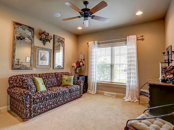 Stunning First Floor Living Town Home bursting with upgrades and offering convenient access to major routes and shopping! The welcoming entry features ceramic tile floors leading to the spacious open layout living area featuring cathedral ceilings, decorative columns, and gas fireplace with detailed mantle. Pecan Hardwood floors flow through the dining area and great room.The kitchen boasts custom cabinets, pull-out shelves, double-sided spice rack, two pantries, tile back splash, granite counter tops, and elegantly trimmed range hood. Enjoy spending time on the private, low maintenance, composite deck that offers plenty of outdoor space for entertaining. Highlighting the roomy master bedroom is a tray ceiling with recessed lights and ceiling fan.