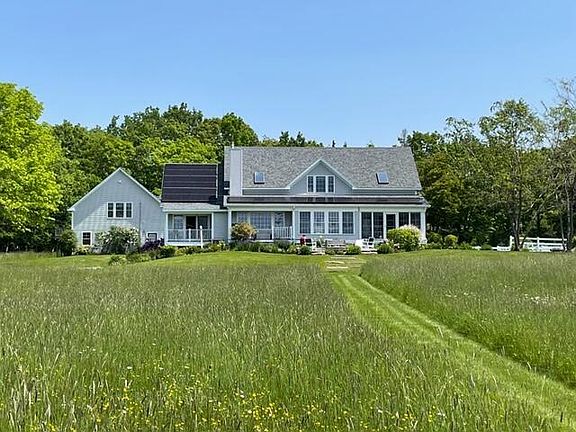 SPECTACULAR home sited on 6.5 acres of fields and shore frontage overlooking Wadsworth Cove's Bog Brook. This beautiful home features an open floor plan with serene views of fields replete with wildlife, water and remarkable sunsets. The property has a barn, perfect for r summer entertaining. Also on the property is a three bay garage with a two bedroom apartment above, perfect for large family gatherings or rental income. No need to order pizza in any more, the fabulous kitchen features a wood burning brick oven.