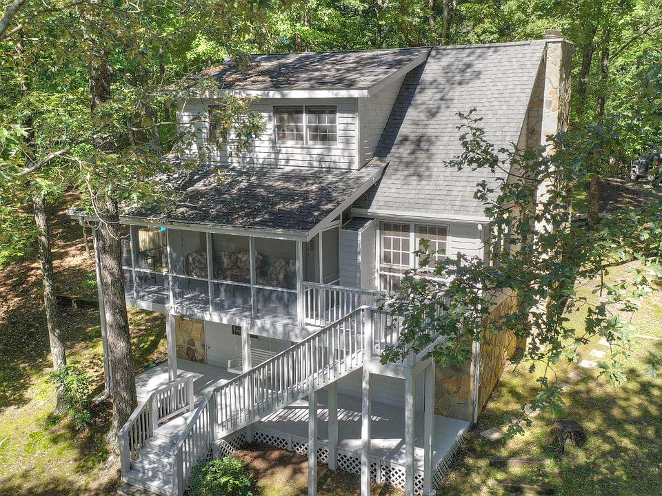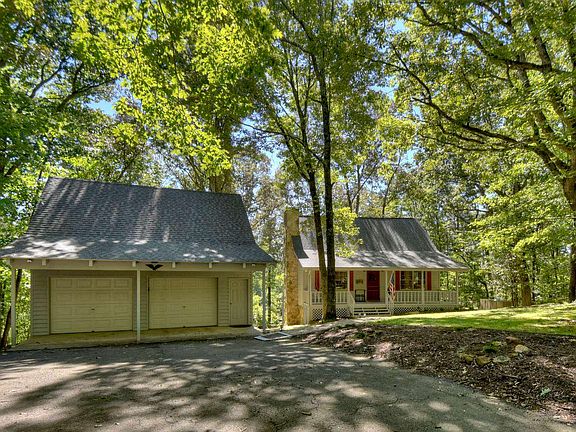 Lakefront-Park Like Setting. Cedar sided home on the peaceful waters of Harmony Lake. Located in the popular Blackberry Mountain community; a wildlife & nature sanctuary with Cartecay River access, covered bridge gated entry & all paved roads. Featuring a total of 3BR/3.5BA; Main house has 2BR/2BA, great room w/vaulted ceiling, 2 story wood burning fireplace (gas starter) loft bedroom with office nook (high speed internet) & basement with climate controlled workshop/storage area. Detached 2 car garage includes a very nice finished guest suite/game room/home office & includes a full bath & closet (plus half bath/utility sink in garage). Enjoy the outdoors with 3 porches, including a lovely screened porch overlooking the lake, gentle terrain & steps in place to the water's edge for fishing & kayaking. You'll love the privacy, serenity and location of this meticulously maintained cabin.