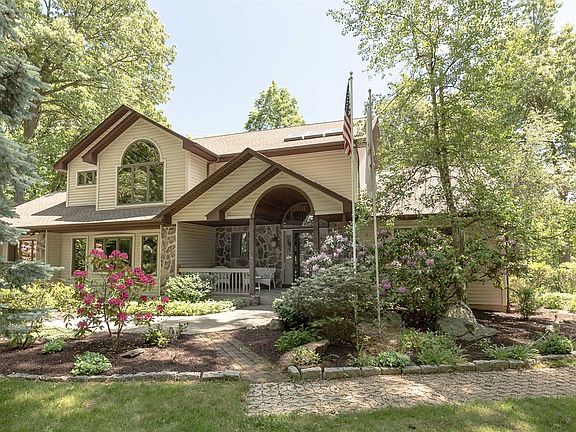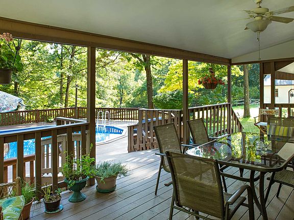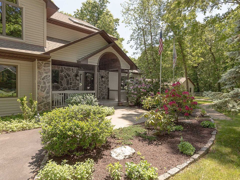Spacious contemporary home situated on over 3 private acres at the end of the street, beyond the cul de sac, in a beautiful setting...your own private paradise. This home, originally the builder's own home of quality construction, offers a flexible floor plan and features skylights, vaulted ceiling, palladium windows. Spacious master bedroom suite with whirlpool tub, 3 additional bedrooms and a full bath on second floor. Kitchen features newer appliances, double wall oven, and dining area. Owners are currently using the family room as a dining room and features stone fireplace. Very large additional room on first floor could be office, den, playroom. Spacious and bright living and dining rooms with vaulted ceiling. A wonderful covered deck off of kitchen dining area overlooks this amazingly beautiful and serene property. You, your family and guests will enjoy this unique property by fishing in the trout stream, swimming in the pool or relaxing on the surrounding deck or covered porch. Two horses are allowed. This home has a large 3 bay garage/barn with 2 horse stalls and electric. There is cleared land with fencing for the horses. The garage is perfect for storing cars, machinery and equipment...ideal for a contractor or car collector. There are also two driveways on the property. Kitchenette, full bath, family or rec room and office in basement give this home mother/daughter potential. Updates include new hot water heater, 2015 roof, and new pool liner. A serene setting which feels like more acreage than it is due to the wooded surroundings. Private yet convenient East Fishkill location...a must see. A lot of house and land for the money. Request previous day notice for showings if possible, thank you.