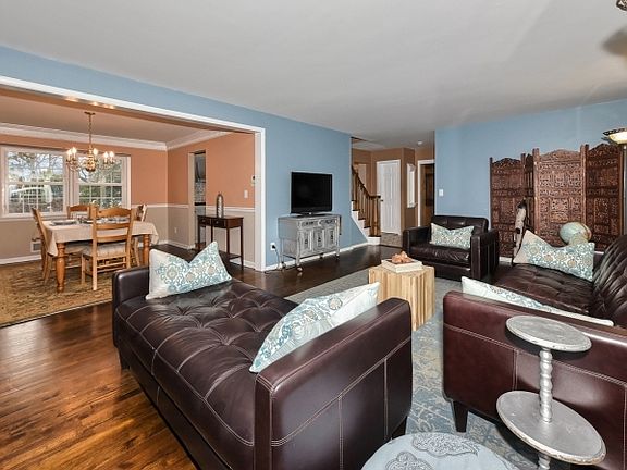 EXCELLENT LOCATION! Welcome to this Black Oak Mansard expanded Colonial on a beautiful tree-lined street. Home offers 4 Bedrooms and 2.1 just completed baths, gleaming hardwood floors and 2 car garage Spacious foyers leads to a large Living Room flowing to a formal Dining Room ideal for gatherings. Kitchen overlooks Den with wood-burning fireplace and features a separate breakfast room addition adorned with windows overlooking property. The spacious Family Room offers built-ins and is filled with natural light. Second floor Master with en-suite bath, 3 add'l Bedrooms and main Bath. A neat and clean basement with endless potential. A large level fenced in yard with new patio offers plenty of room for play. Located in a desired neighborhood with top rated schools, easy access to highways and shopping.