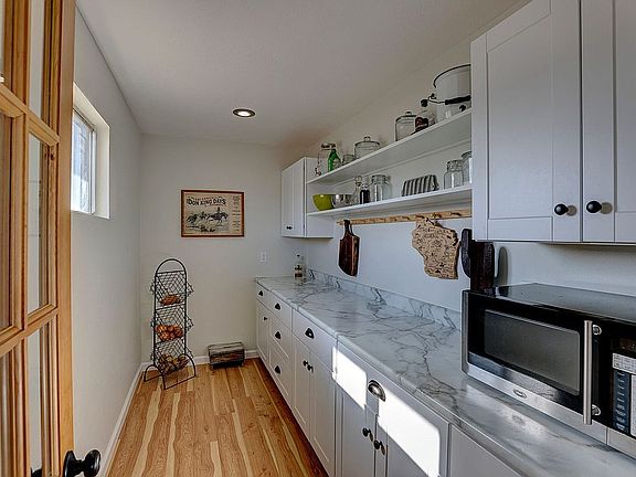 Spacious three bedroom, two bathroom home by Lake De Smet. Open floor plan that has been completely re-modeled, 3,106 square feet. The house has French doors opening onto a 700+ square foot deck, a subway tile kitchen with concrete countertops, walk-in pantry, upstairs laundry as well as main floor hook-up, claw foot tub and tiled showers. The house has an attached garage as well as a 1,920 square foot shop. It sits on 1.3 acres. Has a new furnace, new air conditioner, and a new water filtration system. Comes with all new appliances and is located 7 miles from Buffalo. Enjoy views of the lake as well as the mountains on this beautiful location.