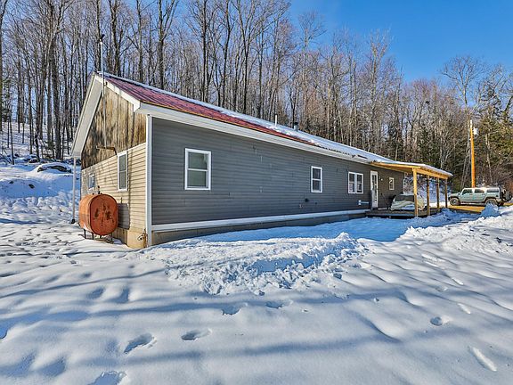 Enjoy single floor living within this beautiful two bedroom manufactured home. Relax in the country privacy of a large 7.38 acre lot. The detached 24x40 garage is loaded with opportunity and includes a spacious storage space on the second floor. This area above the garage has potential for a home office or living space. Access it from the garage or via an exterior staircase behind the building. The garage has plenty of space for cars inside or outside under the covered porch. The house is a 1974 mobile home with part ranch added in 1999. This single floor residence includes two bedrooms, an office, a laundry room, a full bathroom, and a living room with hardwood floors and a cozy sitting area by the warm woodstove. Take advantage of all benefits of single floor living. This property has great investment potential and wont last long. Sellers prefer cash buyers but financing information is available for mobile homes upon request.