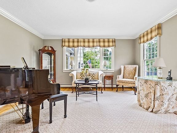 Amazing Colonial home in desirable Myers Farm neighborhood. Extensively renovated kitchen with large center island, granite counter tops, stainless appliances & an abundance of cabinets which opens into gracious dining room with custom built in cabinets, wet bar & coffered ceiling. Spacious family room has built in window seat with wood burning stone fireplace that opens into beautiful sunroom with gas fireplace & slider out to oversized deck & fantastic outdoor entertaining area with stone fireplace & built in grill overlooking the heated pool & pool house. Primary bedroom with cathedral ceiling, walk in closet & full bath with walk in shower, soaking jet tub & double vanity. 3 additional bedrooms & full bath on the 2nd floor. Separate home office with adjoining guest room. Finished playroom in lower level with full bath & sliders out to professionally landscaped yard. If you are ready to enjoy a home built for fun and entertaining...this is a home for you!
