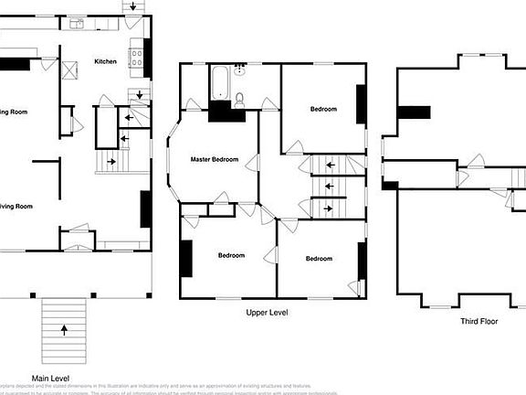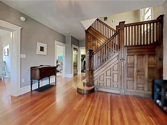 Stately Bellevue home with full-length front porch. Large entry with decorative fireplace, window seat and turned staircase with rich woodwork. Living room with pocket doors and decorative fireplace. Formal dining room with bay window and decorative fireplace. Spacious kitchen with updated cabinetry, tile backsplash, stainless appliances and rear staircase. Large pantry with built-in cabinetry and adjacent powder room. Second floor offers a master bedroom with walk-in closet, three additional bedrooms and updated full bath. Full staircase to 3rd floor offering two large rooms (25x13/21x14) and walk-in storage closet. Tiered rear yard. Excellent Bellevue location!