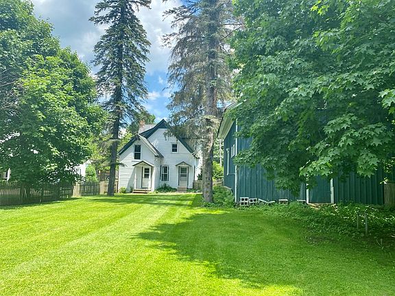 Village home with two story carriage barn and fenced back yard. This home has beautiful natural woodwork, hardwood floors, tall ceilings, newer windows and lots of natural light. First floor has a rear entrance/mud room, charming eat-in kitchen, formal dining room, full bathroom, Livingroom, den with fireplace and great room with built in window seating. Second floor has 4 bedrooms and optional 5th bedroom or family room, full bathroom and laundry room. Outside, there is a large 2-story carriage barn, wrap around front porch and a rear patio area inside the fenced yard.
