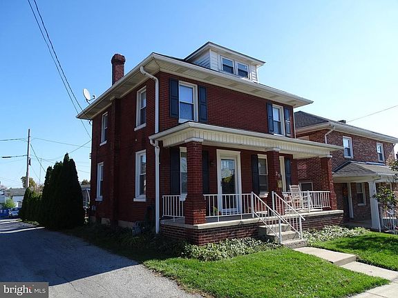 Beautiful Corner Lot! This 3 bed, 1 bath all brick two story home features: Cozy living room with French doors Leading to the dining room, kitchen with stainless steel appliances, hardwood floors, door to 5 x 11 screened in porch with lighting and carpet, fenced in backyard with pond and Shed. Second FL features: 2 bedrooms, 1 full bath, and office or potential 4th bedroom with access to third floor bedroom with cathedral ceiling. Basement Features: Laundry room and great sized Rec room. Other features include Replacement windows through out, custom blinds on 1st floor, and All Appliances, Convenient to Schools, Shopping, Rt-30 and I-83.