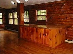 Open concept living area on 2nd floor made from log cabin kit. First floor is traditional wood frame with 3 bedrooms and a bath. Many possibilities w