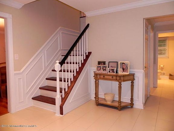 Beautifully maintained center hall colonial. Professionally landscaped, newer driveway, brick paver walkway & steps. Freshly painted w/custom crown, box & floor moldings. Kitchen boasts GRANITE countertops, tumbled marble backsplash, stainless steel appliances & extended dinette area to large two tiered deck w/benches & planters. Family room has wood burning fireplace w/custom marble & wood mantle. Extended study is perfect for office or den. Updated baths. Roof, furnace, C/A replaced. Recessed lighting, ceiling fans, wood floors in living, dining rooms, second floor landing and steps.