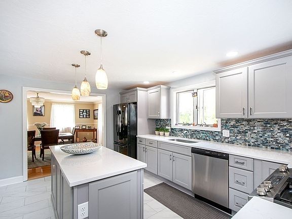 Best value for a 5 bedroom Colonial in desirable Kenberma! Step into the grand entry foyer, you'll enjoy the open and spacious living and dining area. Continue to the new kitchen, which includes quartz counters, center island, and gas cooking to the spacious family room with access to the three-season room with a wood-burning stove. The second floor offers 4 bedrooms, the master suite includes expansive closets, a new bathroom that features a walk-in tiled shower, double sinks, french doors lead to the deck to capture beautiful sunsets, and views of the bay and Boston skyline. The lower level is finished and includes a custom bar with ample space for entertaining and a walkout to the oversized garage for all your storage needs. Enjoy the expansive landscaped fenced yard making this home perfect for family gatherings. Additional updates include roof, driveway, and exterior paint. Short walk to beaches and shops. Get ready to relax and enjoy coastal living!