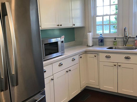 One of the most beautiful renovations in Rhinebeck Village. One block from Village center. This beautiful three bedroom two bath colonial has been converted into a modern sanctuary with huge light, amazing wood floors and beautiful charming spaces. Gorgeous newer kitchen with loads of cabinets granite counters and all appliances opens to amazing living dining area with loads of windows. French doors out to beautiful deck. Large formal living room. Beautiful downstairs bathroom. Huge Master bedroom with many windows. Two other lovely bedrooms. Gorgeous Modern tiled bath with tub. French doors out to beautiful deck. Huge full basement for storage. Lovely private mostly fenced yard. Half month real estate fee. Mainly Rentals real estate licensed real estate broker