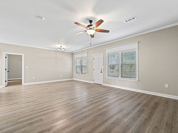 - Exterior features: Lawn, Walk In Closet, bench in tub, close to airbase, gutters, hard floors, neighborhood park, new construction, no carpet, no steps, one level, open concept, screened windows, soaking tub, soft close drawers, split floor plan, strom door, tray ceiling in primary bedroom, walk in shower