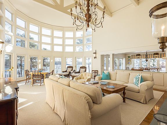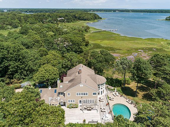 Overlooking beautiful Ockway Bay, this masterful residence is located in close proximity to Popponesset Beach and Vineyard Sound and effortlessly offers the quintessential backdrop for relaxed coastal living. With dramatic water views from nearly every room, the impeccably designed home features a finely appointed gourmet kitchen, inviting dining room overlooking rolling lawns, and grand waterside fireplaced living room with a circular wall of windows that superbly showcase glorious sunsets. Highlights of this magnificent 4+ acre property include three luxurious master suites, three guest bedrooms, handsome light-filled den, and spacious fireplaced lower level opening to the Gunite saltwater pool, spa, and adjoining deck. The home's protected dock, manicured grounds, and sensational views make this timeless waterside masterpiece simply extraordinary.