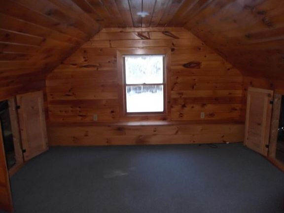 (1728) - 4 room, 2 bedroom, 1 bath house with 1208 feet of living space. Open concept kitchen/living room. Woodstove in the living room, finished second floor with knotty pine on the walls and ceiling. Plenty of storage for the toys between the drive thru garage and storage sheds.
