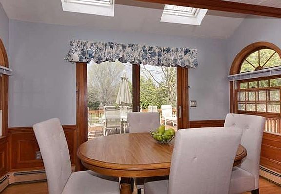 - Kit Dscrp: Pantry, Dining Area, Flooring - Hardwood, Countertops - Stone/Granite/Solid, Cabinets - Upgraded, Deck - Exterior, Skylight, Kitchen Island, Stainless Steel Appliances, Recessed Lighting, Balcony / Deck, Slider, Cable Hookup, Wainscoting, Gas Stove