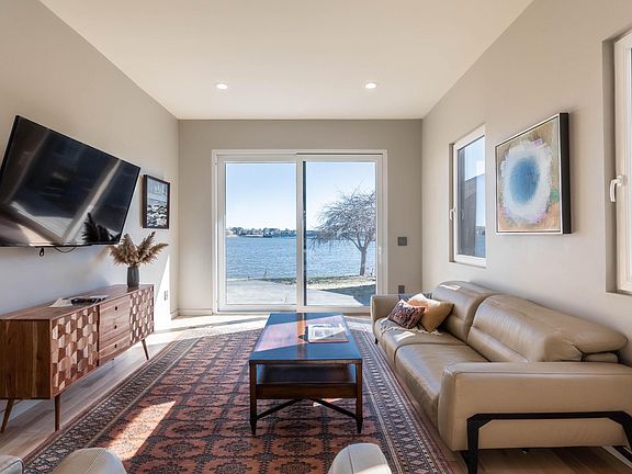 Modern meets the coast of Maine at this recently-built showpiece along the banks of the Presumpscot River. Where the river meets Casco Bay, the broad body of water is home to some of the most varied wildlife in all of Maine. Sit and watch the world go by from the first and second floor decks overlooking the river, or delight in the interior's modern aesthetic while looking out the double glazed dual-hinged Swiss windows. A fantastic condo alternative for someone wanting the convenience of Portland but a little more room to breathe. The space is flexible and easy-going, with cutting-edge design at every turn. High efficiency heat pumps provided exceptional heating and cooling. With your own private river-frontage, enjoy a morning paddle as the sun rises over the islands, or a sunset cruise in the summer evenings.