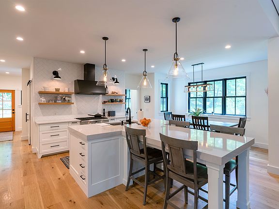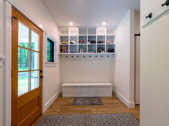 Mature maple-lined road welcomes you to the coveted Owls Head neighborhood less than 2 miles from Stowe Village. The luxury home built by Riverwatch Building Co. takes inspiration from the classic lines of Vermont's farmhouses. The main living space captures the natural surroundings and plenty of light. The high ceiling in the living room is accented with timber beams and anchored with a stone hearth and gas fireplace. The truly gourmet kitchen sheds the farmhouse kitchens of the past, for a modern hub of the house. Clean lines showcase the center island. These lines are carried throughout with crisp tiled backsplash and stone countertops. Storage isn’t an issue in this kitchen as there’s a butler’s pantry. Just off the kitchen, you’ll find a spacious home office. The main floor primary suite has shiplap walls and warm wide plank flooring. The primary bath is a delicate dance between wood, stone, tile, and glass, coming together to create a space for maximum relaxation. The walk-in closet is a dream unto itself. Ascend to the second level, there’s a guest suite with a walk-in closet and a luxurious bath. Two additional bedrooms with a shared bathroom are perfect guests. The lower level has open living space, a state-of-the-art workout room, infrared sauna, half bath and a large entertainment room. The outdoor patio is perfect for year-round use complete with a hot tub. There’s an oversized three-car heated garage with extra high ceilings and storage for all of your gear.