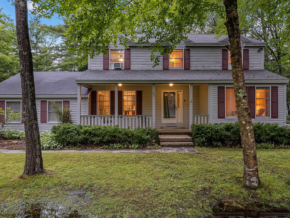 Enter through the charming covered front porch with bench swing into the inviting foyer with hardwood floors. The circular floor plan flows into a cozy den with pellet stove and then into the living room, featuring a center fireplace and sliding glass door to the back yard. The living room is open to the kitchen, which has hardwood floors, an island, double ovens, plenty of pantry storage plus space for a table in front of the bay window. The kitchen connects to the dining room and a functional mudroom with access to the garage or back yard. A half bath finishes off the first floor. The upstairs provides 4 bedrooms and 2 full baths, including a spacious primary bedroom with private bath and walk-in closet. Partially finished basement. The oversized garage has room for two cars and your lawn equipment. Outside you'll find a great yard with a large two-tier deck offering plenty of space to entertain, perennial gardens and an automatic on demand generator. Enjoy vibrant Downtown Brunswick, Bowdoin College, and Maine State Music Theatre, where you can indulge in restaurants and food trucks or enjoy live music, a farmer's market, and much more. Just around the corner from hiking trails at Crystal Springs Farm or venture further to other land trust trails or to visit the ocean, plus three golf courses nearby. Easy commute to Portland, Lewiston or Augusta. Come & see for yourself all this home and location offer.