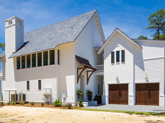 This stunning bay view home located in the Churchill Oaks neighborhood is designed by Savoie. The main residence offers 3 BA/3.5 BA, 2 car detached garage, and a 1 BR/1BA carriage house. This high end home has extraordinary finishes such as reclaimed hardwood flooring throughout, tongue-and-groove ceiling and brick accents throughout. Enjoy quiet evenings on the wide covered porch with gorgeous views of the Bay. The spacious first floor features an inviting living room centered around a white brick fireplace and grand dining room with a striking designer chandelier. The chef's kitchen faces the courtyard with beautiful quartzite counters, white shaker style cabinets,