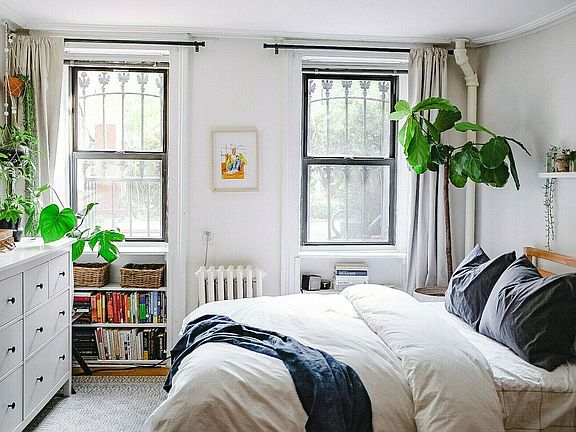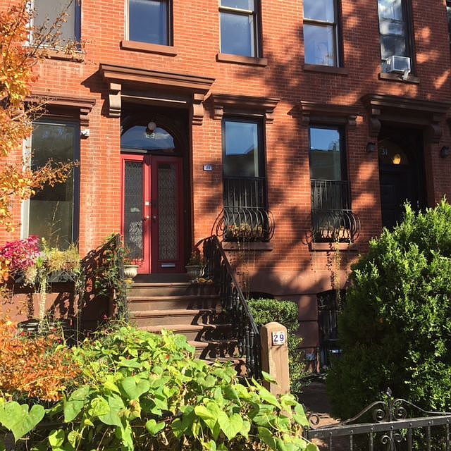 Garden apartment in north Park Slope. 1870s private brownstone. Use of beautiful garden and deck. No fee. Floor-through, one bedroom, large kitchen-living room plus study facing garden in renovated owner-occupied building. Hardwood floors, dishwasher, AC, washer-dryer in basement. Ideal for individual or couple. No dogs. Near BAM, Barclays Center and 2/3 and Q/B subways. Send email telling us about yourself and your situation.