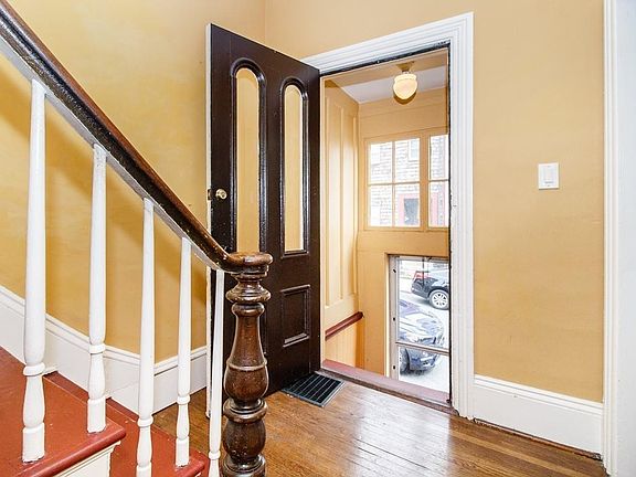 Single family three bedroom sunny home alternative to a condo: Bulit in 1870 with an enclosed garden and patio offers the benefits of single family living. The generous entry into the living room with two large windows with views of the Boston skyline, is connected to the dining room. The Dining room has two large windows looking at the enclosed patio and garden, plus has two walk in clostes; access to the basement and to the kitchen. The kitchen has a stainless gas range, stone tile backsplash, tile floor, and cherry cabinets, and opens to a floor-to-ceiling pantry, a full bathroom, and access to the garden. The upper level has a hallway with a large window. The Master bedroom suite has a bedroom and alcove, a step down to a dressing room with two double closets and a master bathroom with a pedestal sink and stall shower. The two other bedrooms have windows overlooking the street. The basement has ample storage, a laundry with side by side washer & dryer, & access to the street