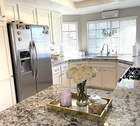 Remodeled single level home in the heart of RSM with an exceptional floor plan. Beautiful white kitchen with granite countertops. Family Room is enhanced by a warm fireplace and built in book shelves and TV center. Light And Bright with numerous windows overlooking a nice sized private yard with gazebo. Mature lemon tree in front yard! The landscaping includes exotic plants, flowers and garden area for your enjoyment. Bedrooms are spacious with plenty of closet space. Master Bath features an updated shower area and double sinks with vanity. Light. Bright neutral dcor. Excellent location near top-rated schools, shopping, restaurants, parks, tennis courts and beautiful RSM lake. A MUST SEE!
