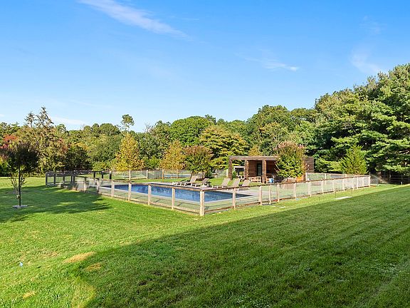 Sited on a large 3 acre parcel, this visually stunning residence bestows boundless space and the tranquility of nature from every room within 6,700 sf of living space. Seven bedrooms with six and one-half baths are provided in this luxurious home convenient to East Hampton Village and Ocean Beaches as well as Sag Harbor. With walls of floor-to-ceiling glass on most exterior walls, the first level features a double-face fireplace with a formal living\dining great room and guest en suite. An office or den and mudroom are offered for privacy and ease. On the second level, the grand primary en suite with double closets has a large terrace overlooking the expansive grounds. Three additional bedrooms with baths and an additional terrace are set on the opposing side of the home. The second level also provides a convenient laundry space. A lower level has a dedicated gym, an open space including media/entertainment, and play area. Two bedrooms share a full bath, terrace, and direct access to the back grounds. Finishes throughout are consistent with the beautiful surroundings and show off natural cedar and hardwoods, stone, steel, and glass. Expansive open decks provide entertaining space across the back elevation of the home and overlook extensive, cleared grounds with sweeping views. The property is highlighted by a heated, gunite swimming pool with spa, firepit, pool house, covered patio, and tennis court. Additional amenities include a second laundry room, a full house generator, and an indoor/outdoor AV system.
