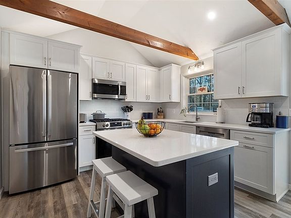 - Features: Beamed Ceilings, Vaulted Ceiling(s), Dining Area, Countertops - Stone/Granite/Solid, Kitchen Island, Cabinets - Upgraded, Exterior Access, Stainless Steel Appliances, Flooring - Engineered Hardwood
