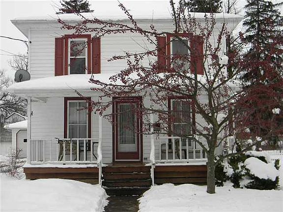 This 3 bedroom 1.5 bath village home is walking distance to park and stores. A newer 2+car garage with workshop area, great deck, maintenance free vinyl siding and a lovely front porch to enjoy! Spacious living room, formal dining, 1st floor laundry and den. The kitchen has laminate floor and newer dishwasher. The back entry room has sliding glass doors that lead to the deck and great backyard. Pool is included but sold "as is".