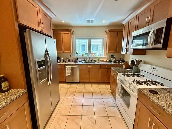 AVAILABLE 9/1- Extra large apartment with beautifully renovated kitchen and overall in excellent condition. The first floor features a large sunny formal living room + dining room, the chef's kitchen, bathroom and 1 bedroom. A stair from the kitchen leads up to the 2nd bedroom which. Refinished hardwood floors throughout, gas heat, modern double pane windows, and in unit laundry. There is also a very nice shared yard. Great value and space. 1 tandem parking spot is included