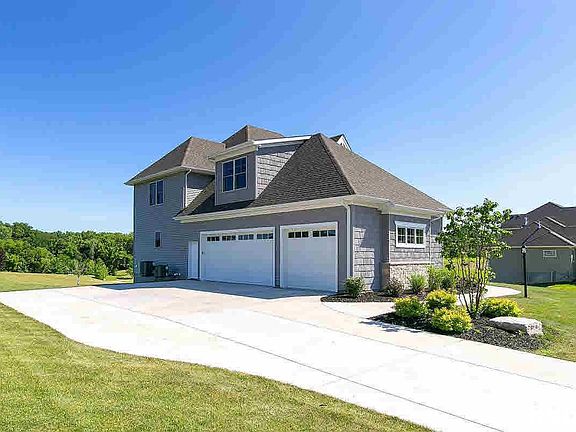 This pristine newer 6 BR, 5 BA custom built 1.5 Story in the PV school district is perfectly positioned on a 1 acre walkout lot. The scenic tree-lined surroundings from your over-sized trex deck are breathtaking year-round. You can also enjoy the views from your large 2 story great room with a wall of windows. The main greige color palette compliments all the design elements. There has been several custom updates throughout this IMPECCABLE home. ENTERTAIN in your gourmet kitch with over-sized range & hood, walk-in pantry & quartz counters that is open to your informal dining & great room. You'll love the main floor master with a generously sized bath to include soaking tub, & walk-in tiled shower. Upstairs offers 3+ beds & above the garage room that connects with 2 jack n jill baths. Downstairs offers more hosting space with a full sized wet bar, billiards, rec room, spare bed, bath, storage & more! The drop zone off the garage is an organizer's dream! Sellers Licensed agents in Iowa.
