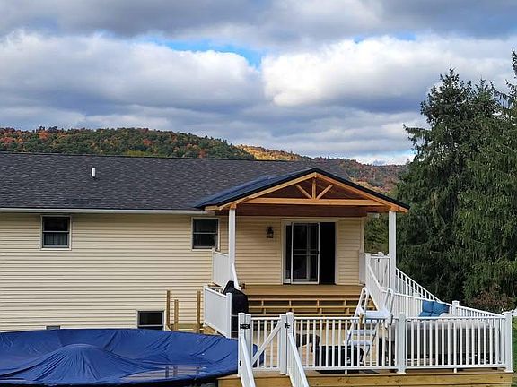 Beautiful home near Coudersport with lovely Potter County mountain views out every window. This home features 3 to 4 bedrooms, 2.5 baths, two living rooms, dining room with access to the back deck and above ground pool, fully remodeled kitchen, mudroom. Above ground pool and covered porch with expansive deck added in 2022. New sliding glass door to upper deck. Kitchen was remodeled in 2022. Finished shop in the integral garage, concrete parking pad with 2 car detached garage. New French drain system installed in 2024. Updated finishes throughout. The basement has a large mud room, half bath, den/bonus room, laundry room, utility room and a bedroom (does not have a closet). Blueberry bushes on the property. The gravel road into the subdivision is maintained by the township and is on a dead end street. This home is move-in ready! Access to public county game lands for hunting and recreational purposes as well as access to many public ATV roads/trails.