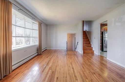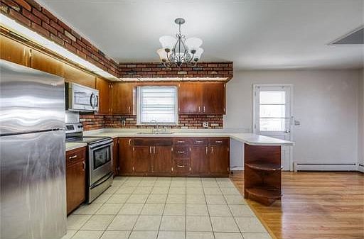 EAST facing spacious 5 bedroom, 3 bath, 2 kitchen home with hardwood floors, partially finished basement with laundry room, full bath, family room, utilities, lighted large crawl space for storage. New above ground oil tank in crawl space. Permit on file. Large attic space for storage. Includes 2 refrigerators, washer and dryer. Separate entrance for ground floor living space. Fenced-in backyard with shed, above ground pool and deck. Great for entertaining. Located on dead end street. Near all major transportation, shopping and schools.