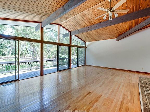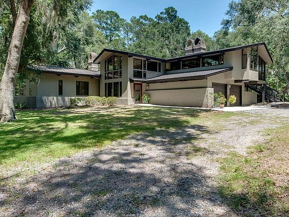 Nice stately home in May River Plantation. This home has been significantly increased in sft. This home includes 5 bedrooms, 3 of which are considered en-suite master bedrooms & 4 1/2 baths. The tongue & groove vaulted ceilings, extensive stone & hardwood flooring give this home a warm & inviting comfy feeling. The vast soaring views overlook the pool & hot tub patio area & extend to the wooded property full of wildlife. Perfect for families and entertaining. May River Plantation offers a dock & boat ramp. Fishing, shrimping, crabbing & lazy days on the May River are just moments away.
