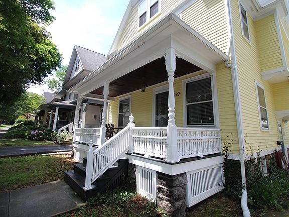 Please text "29Pinn" when inquiring. This is a very charming and updated 4 Bedroom 1.5 Bathroom single family home located a minutes walk to Cobb's Hill Park. Loads of character with entryway, parlor and grand staircase with built-in nook. Great floor plan with a formal living room, dining room and updated kitchen with cherry cabinets, solid surface countertops, frost free refrigerator/freezer, self-cleaning oven and dishwasher! Warmth in oak hardwood floors, chestnut trim and stained glass are throughout this home and in each of the spacious bedrooms with ample closets. The updated main bathroom has travertine marble tile and a maple vanity with granite top and plenty of storage. This home has a large attic for even more storage and the laundry facility is in the basement. For outdoor space there is a large front porch and two porches in the back yard to go with a new concrete patio overlooking the expansive yard. This is one of Rochester's nicest tree-lined neighborhoods and is minutes to Brighton, Downtown Rochester, vibrant entertainment districts, shops and eateries. Professionally managed and maintained. Credit Check and references a must, pets negotiable with a non-refundable deposit. Owner pays for pure water, grounds maintenance, refuse removal & snow removal. Tenant pays Gas and Electric. Absolutely no smoking allowed in premises.