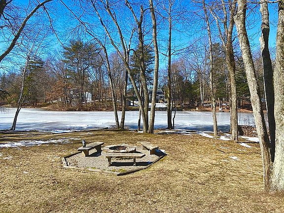 A Pleasant View & Staycation it is!! Beautiful 7 Acre Bennett Pond awaits you where you can enjoy all the recreational activities water can offer YOU right in your own backyard! This Beautiful & Charming Colonial features a Beautiful, spacious kitchen w/ cabinets galore, all appliances, granite c tops, large dining area opening to cozy den w/ frplc & built ins - exterior access to deck dining and better a screened in porch - water views! Formal dining rm opens to a large formal living rm - both w/ hdwd flrs, half bth/laundry combo round out first flr. Three spacious bdrms- all hdwd flrs, master bdrm features remodeled master bth. The lower level yells ENTERTAINMENT - game rm, playroom & home office combo - You name it...Sliders to gorgeous patio area, hot tub TOO, fire pit - SPELLS out Staycation, why not? You must see this RARE FIND in town! Seller states 50 yr shingle roof - approx 13 yr old, no flood ins required, pond is treated by surrounding homeowners- annual payment to trust.