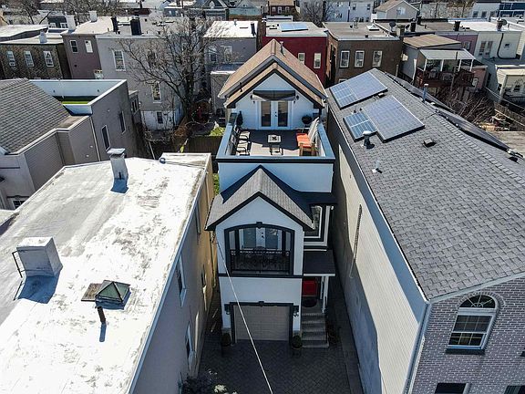 Prepare to be blown away by this rare and massive 3016 sq.ft. sunny and bright, open concept, turn-key triplex plus basement single family residence with up to 5-car parking in the highly sought-after Jersey City Heights. 29 Poplar Street is an impeccably maintained owners occupied tri-level home that was custom-built and fully renovated in 2010 with seamless blend of hardwood and ceramic floors throughout. On the first floor of the home you’ll find the custom kitchen that opens to the dining and living room where 22' high ceiling soar overhead. There is a full bathroom on this level for convenience, as well as a spacious bedroom with a walk-in closet. Moving to level two you’ll find three more over-sized bedrooms with large closets, one of which is a primary bedroom with en-suite bathroom. This floor also has a second full bathroom and a private balcony, an ideal spot to sip on your morning coffee, in one of the bedrooms. The third floor is where a flex space is located and could be adapted to suit your needs, such as an office, a family room, a home theater (surround sound system is already in place), a 5th. bedroom, or an additional living room. From here you can access the recently updated south-west facing expansive roof deck. Whether you’re enjoying some time in the sunshine, dining alfresco under the stars or entertaining guests, this outdoor space is sure to be a much-loved part of the home. Adding to its allure is that you’ll indulge in the full privacy of this space. Additional key features include basement with a washer/dryer room and plenty of space for storage, Navian on-demand tankless water heater, remote controlled gate offering security, a single car garage plus ample space for additional four vehicles on the long driveway covered with beautiful pavers. This pristine home is minutes to Hoboken, short walk to Ninth Street/Congress Street Light Rail, steps to Washington Park, not to mention the multitude of local shops, restaurants, and cafes on Central/Palisade Avenue.