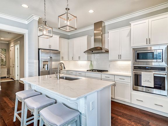 This beautiful Florida cottage is the perfect beach retreat in the popular NatureWalk community. 2 large front porches span the width of the house, which overlooks a wooded preserve and 2 ponds. This home is only 2 years old, has never been rented, and has been lightly used, making it feel brand new! It is in impeccable condition. The front porch features a bed swing and a table for outdoor dining. The kitchen boasts upgraded cabinets, quartz countertops, and opens up to the inviting living/dining area. A junior suite is located on the first floor with an ensuite bath. On the back of the house is a 2 car garage, a rare feature in NatureWalk.As you arrive upstairs you are greeted by a comfortable landing/tv room with a full sized sofa opening