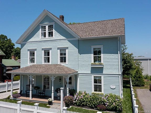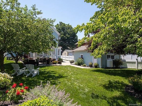 Walk to everything from this superb Essex Village Charmer! Renovated from top to bottom, welcome home to the the Niles Gladding house, Circa 1898. This gracious home is loaded with light and boasts beautiful hardwood floors throughout three floors of living space; all refreshed with new contemporary touches. Step from your front porch into the lovely entry foyer, the comfortable living room is open to a sitting room with fireplace, there is a large dining room and renovated kitchen with quartz counters and stainless appliances, a half bath and access to the back porch and new patio area - stunning! The second floor has a gracious new full bath with period claw foot tub, walk-in shower and beautiful tile work. A large L-shaped bedroom can be your master if you so choose, lots of closet space and even room for your in-home office. Another lovely bedroom completes the second floor. The third floor master bedroom is huge, has a new true "walk-in" closet with California closet insert, water view window and half bath, your private escape! Entertaining is a breeze in this beautifully landscaped patio area, all new in 2019. There is a detached garage, and rebuilt gardening shed, perfect for all you outdoor tools. New sprinkler system keeps the lawn and gardens lush, there is truly nothing to do but move in! The entire yard is fully fenced, even a gate for the stone driveway. Walk to the water, Village shops and restaurants, and all Essex has to offer.