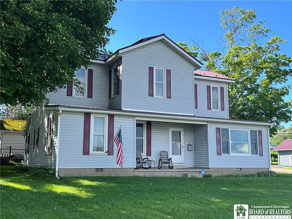 Enjoy the summer overlooking Chautauqua Lake, home of the Chautauqua Bell. This well-maintained 3-bedroom, 1.5-bath home features a first-floor bedroom and an eat-in country kitchen. Lake views grace all the front rooms of the house, offering a serene and picturesque setting. Conveniently located within walking distance to all amenities, this fully furnished home is ready for immediate occupancy. Perfect for short-term rentals, it has never been owner-occupied. Don't miss this charming lakeside retreat!